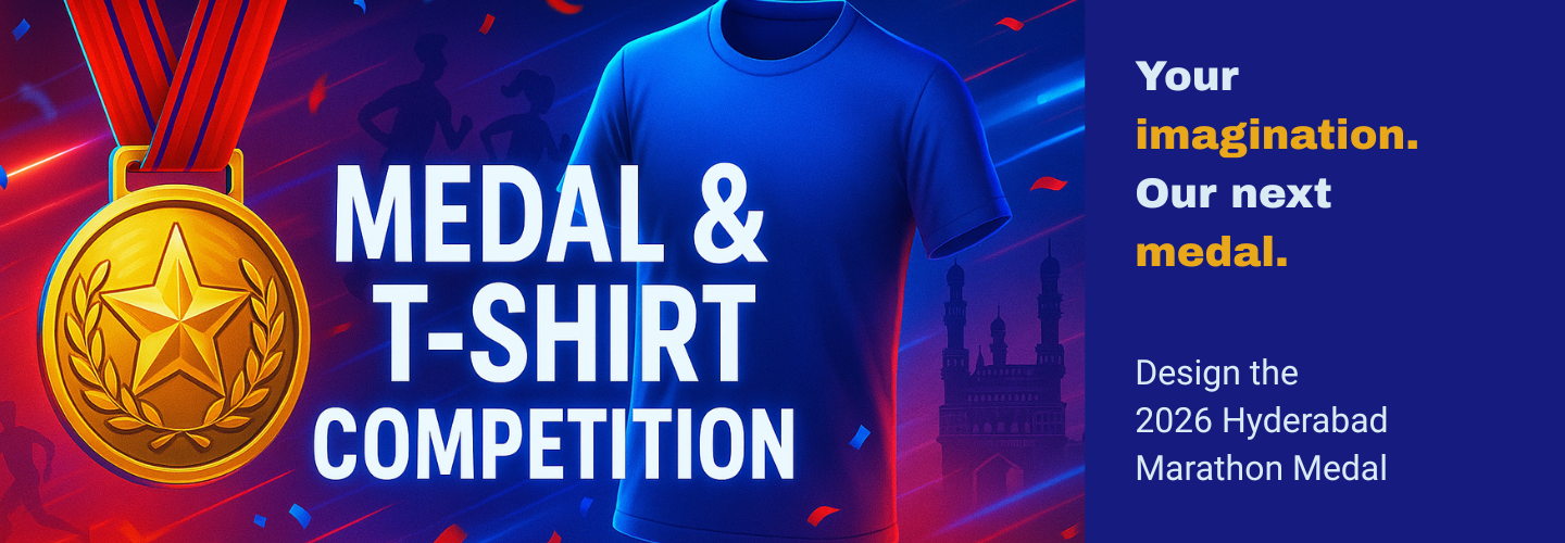 The Hyderabad Marathon is more than just a race; it is a celebration of human endurance, community, and the spirit of our vibrant city. For the 15th edition of the Hyderabad Marathon, we invite young, innovative designers to create a finisher’s medal that embodies both the spirit of the runner and the responsibility towards the environment. The theme of this year’s medal is sustainability, emphasizing ecological balance, mindful living, and the shared commitment to a greener future. The design should celebrate the achievement of every participant while symbolizing Hyderabad’s cultural vibrancy and the marathon’s dedication to environmental stewardship.